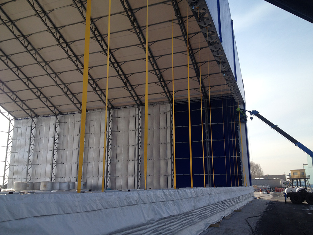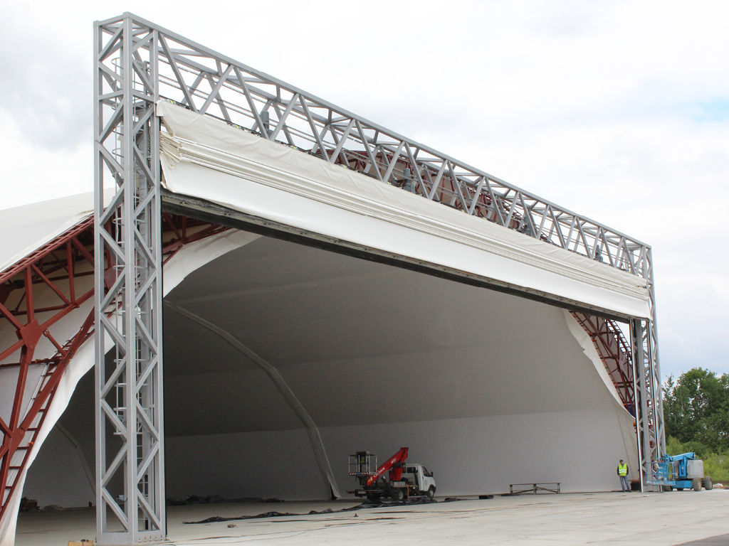 Ворота шторные подъемные серии HD10, HD20, HD40, предназначены для перекрытия проемов больших размеров. Ворота отличаются высокой степенью износостойкости и герметичности, устойчивы к большой ветровой нагрузке, не требуют дополнительного технического обслуживания. Благодаря модификациям с поворотной колонной возможно раздельное открывание проема по секциям или использование на одном проеме с разной высотой. Применяются в авиационных ангарах для хранения и обслуживания самолетов и вертолетов, складских помещениях, судостроительных эллингах.
