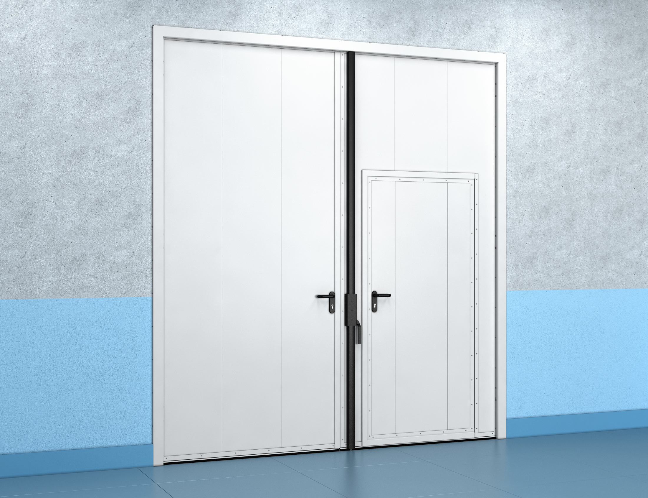 Распашные гаражные ворота в стальной раме с сэндвич-панелью серии SG-SS устанавливаются на объектах частного, коммерческого и промышленного секторов, например, в гаражах, мастерских, ремонтных депо, производственных цехах и т. д. Классическая конструкция обеспечивает надежность и долгий срок службы ворот, заполнение полотна сэндвич-панелями — высокие энергосберегающие показатели.